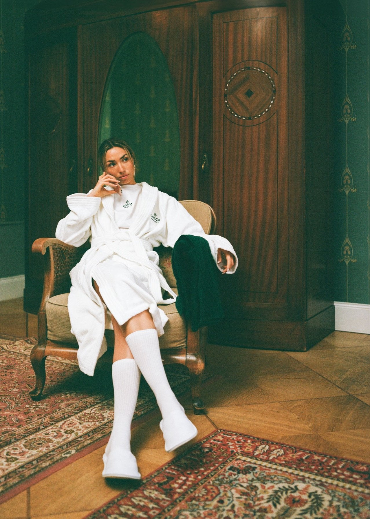 Inspired by Tony Soprano‘s classic white bathrobe and the sauna scenes in the series, this bathrobe has it all.
