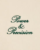 Front: Green logo and Power & Precision embroidery,