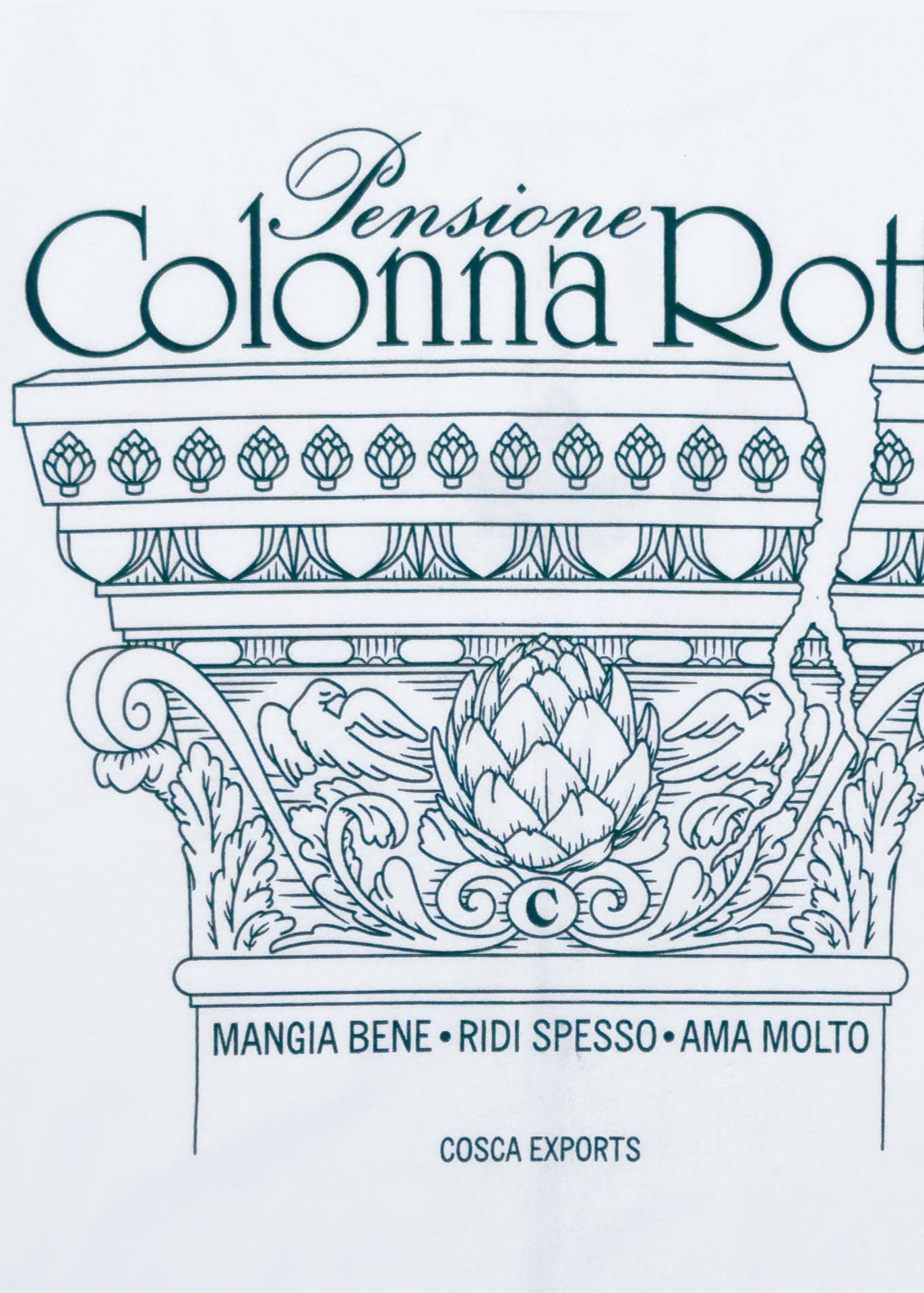 Back: green Pensione Colonna Rotta screenprint